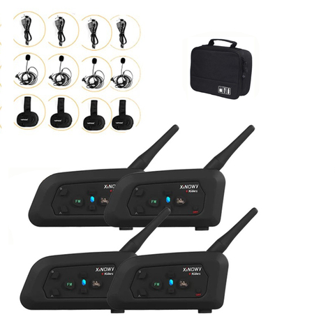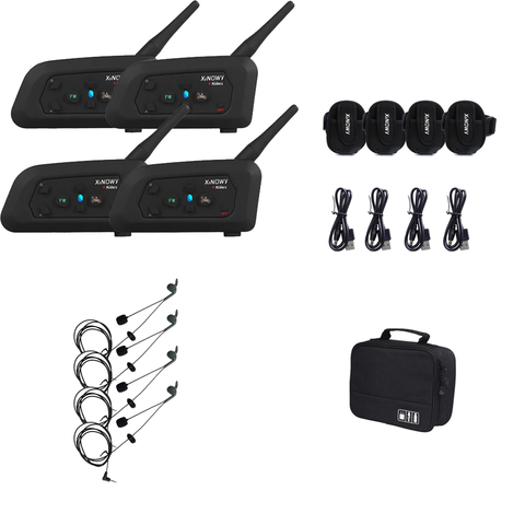 XiNOWY V4C Bluetooth 3,0 motocicleta fútbol árbitro intercomunicador 1200 metros 4 personas intercomunicador completo dúplex bolso